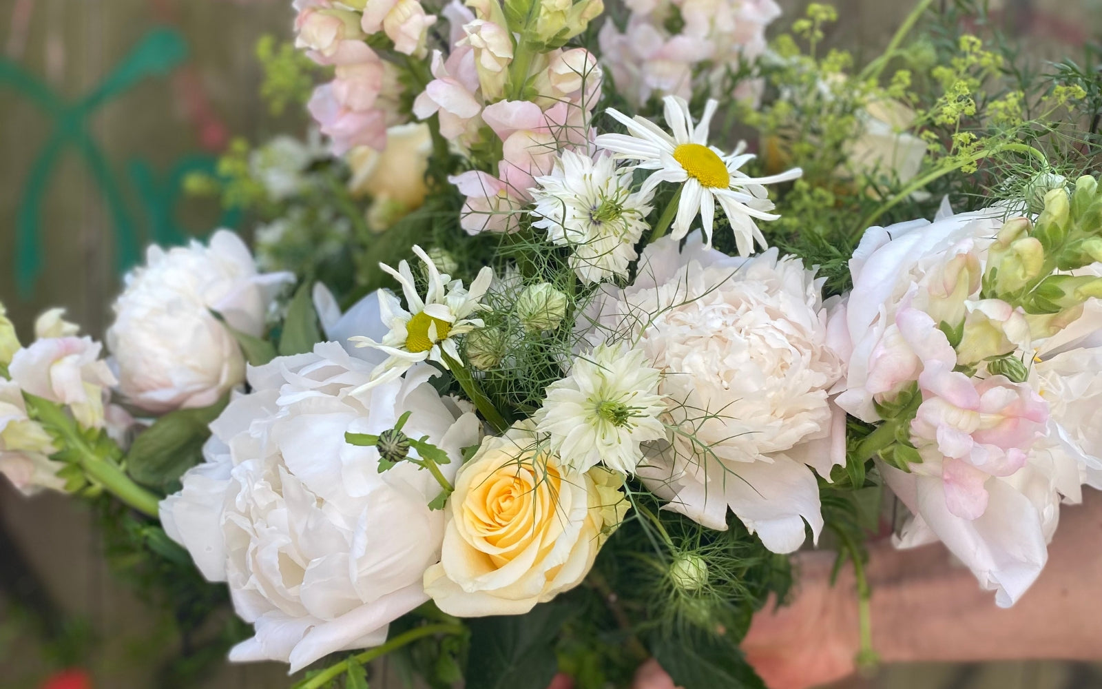 Tæt buket i lyse toner